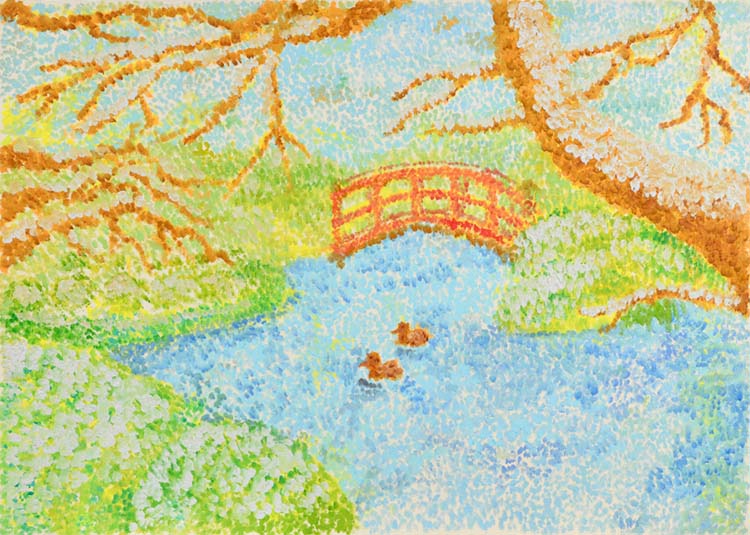 本作品は印象派の筆触分割、特にジョルジュ・スーラが用いた点描の技法を用い、思い出の場所をテーマに制作した。様々な異なる時間の光を、鮮やかな色彩で表現する印象派の特徴に準えて、幼い頃の思い出の場所を、春・夏・秋・冬の4場面に分けて描いた。色彩を幾層にも重ね、優しく柔らかい、思い出の中の光を表現することを目指した。