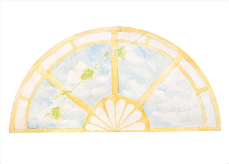 私は「愛」の反対は「無関心」だと考えている。本作品ではその2つをテーマに、感情という目に見えないものを目に見える色やモチーフで表現した。ミュシャの特徴的な線、円や曲線を用いた窓枠のような構図、女性像の表現を研究し、「愛」と「無関心」が背を向け対になるように描いた。花や植物、装飾文様にもそれぞれ意味を持たせている。